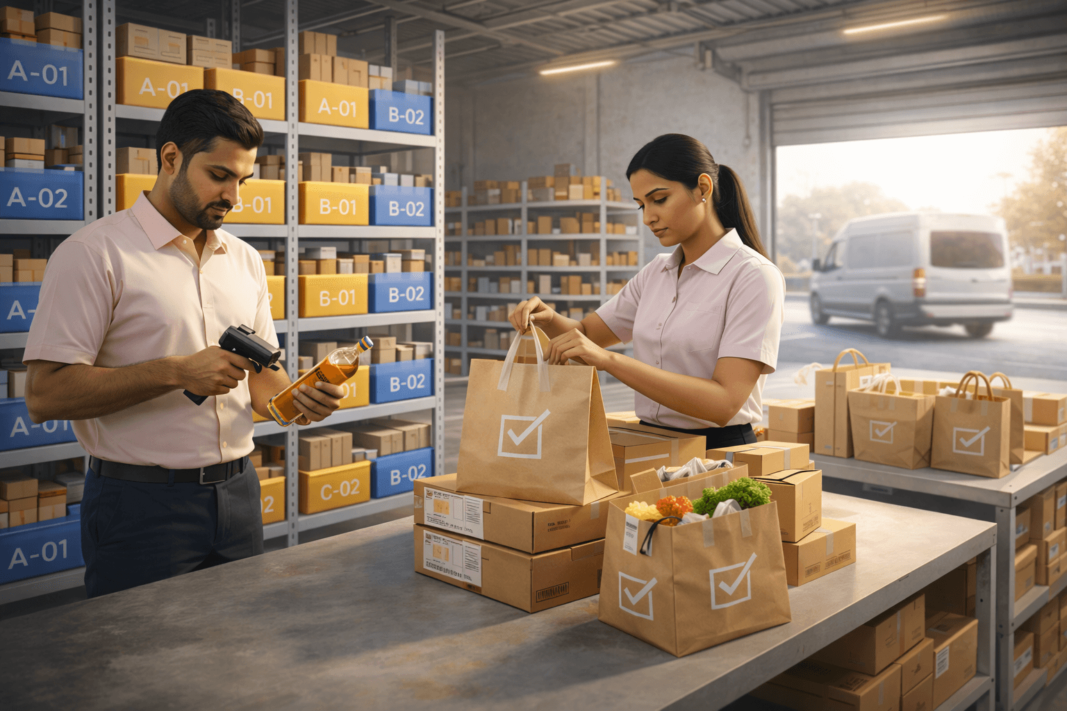 When someone orders from Blinkit or Zepto expecting 10 minute delivery, there's zero room for error. The picker can't spend 5 minutes wandering around looking for atta.